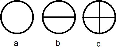 As a universal motif, the cross is the single most essential expression of the structure of the psyche. It corresponds to the initial act of creation in emerging through a geometric progression that first divides the unity of the whole (Figure IV-2“a”) in two horizontally--what is above and what is below (“b”), and then vertically into four (“c”), the result being a sense of harmony and unity between the parts of the whole.