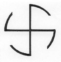 The Grand Conjunction Reaching back to the origins of human consciousness, stone and cross or cross in stone express the union of spirit and matter. The crucified body of Christ is entombed and enclosed by a stone which, with the Resurrection, is rolled away. With the Cross--Calvary that is--as the grand conjunction of opposites, it is also the crossroads of both historic and evolutionary time. It is where heaven and earth--the eternal and the temporal, spirit and matter--come together. Similarly, in the soul’s journey, the cross foreshadows the mysterium coniunctionis--the inner marriage of the major opposites of the psyche, and the restoration of its equilibrium. The cross is also the very structure of the psyche: its horizontal line is for the earth, the body, the feminine principle; and its vertical line for heaven, the spirit, the masculine principle. Its opus is the reconciliation of the body, mind, soul and spirit into a harmonious whole which, like the four rivers of Eden, flow from the central fountain of Life in order to restore and replenish the entire psyche. In design this is expressed by the gammadion or tetraskelion, a motif that emerges when the circumference of a circle containing a cross is broken as in Figure IV-3. The motif is also a variation of the swastika or Svasti, a Sanscrit word carrying the essential meaning of “all is well,” and which dates back to early pictographic symbolism.