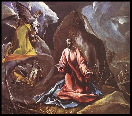 The images of this scene are familiar from the work of numerous artists, including El Greco, who in Plate IV-2 shows the angel giving Jesus the cup he now realizes he cannot escape drinking--the “cup of salvation”--in which the purity of his life blood, like the clarity of the finest wine, will be co-mingle with the sediment at the bottom—the bottom of the human barrel. Agonizing against the sheer weight of what is pressing in on him, he prays for strength to endure what he must. He is preparing to let down the final barriers between his light-filled mind and the twisted, fragmented, demonized, “outer darkness” of human-nature-gone-astray. Having consumed the cup to the last bitter dregs, his struggle now is to remain consciousness. In opening his mind to the cumulative psychic pain of collective humanity, he has opened the floodgates to his heart as well to an inundation of the suffering the human race has perpetuated on one another. So overwhelming are the heart-wrenching emotions he feels, he fears it is more than he can bear. The fight to stay conscious continues as alternately he vicariously experiences what it is like to be victim, and then what it is like to be the demon-possessed victimizer. He feels the helplessness of the abused; the frustration of the disinfranchised; the anger of those who know what it is to be the brunt of injustice; the heart-breaking pain of those who have experienced betrayal; or known what it is to feel forsaken by family, friends, and most awful of all to feel abandoned by God. Gethsemane will lead to the Cross, and the Cross into the bowels of Hell. But in Gethsemane he already will have been there.