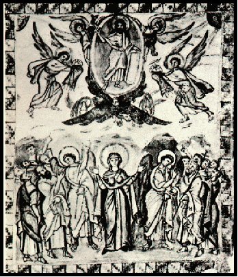 Ezekiel’s Chariot Ezekiel is another Old Testament prophet with relevance both to the Ascension and to individuation symbolism. The sixth century iconography of Plate VII-3 shows Jesus’ Ascension as taking place in Ezekiel’s chariot. In the image, Mary is in center front, flanked by two angels. On either side the disciples are looking heavenward.