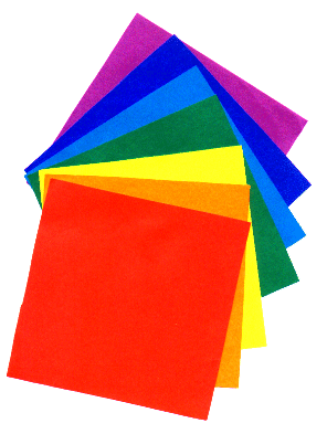 purchase a ream of each color from a printer, a paper company, or large office supply house. For Permanent Mandalas, a glue stick is all else that will be needed. To Make Temporary Mandalas, you will need small, round-head paper fasteners. In this case, use a pattern maker's hole punch and hammer or an ice pick, making a center hole in each of the 49 components. To determine the centers, draw diagonal lines from the corners of the square patterns, with the center being where the diagonals cross, then use the squares to transfer centers to the same size circles. |