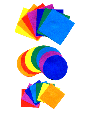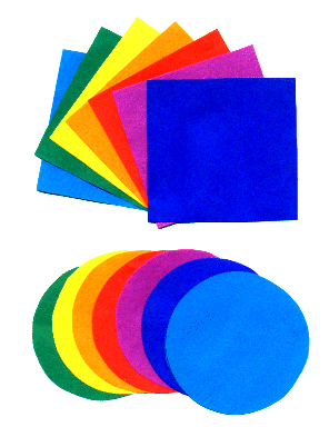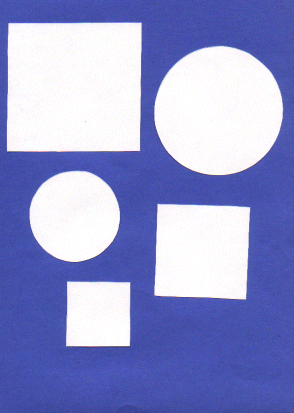 Patterns for the IPMM: For a small mandala, which can be assembled from 8 1/2" by 11" paper, you will need four squares of the following sizes: 5 1/2"; 4"; 2 3/4"; and 2". Graft paper will make this easy. You will also need three circles in these sizes: 5 1/2"; 4"; and 2 3/4". For accuracy here, use a compass. For larger mandalas, using 11" by 17" paper, the squares can be 9 1/2", 6 1/2, 4 1/2, 3", and the circles 9 1/2, 6 1/2, and 4 1/2. Durable hard patterns can be made by cutting the above-size squares from graft paper and transferring these to manila or other paper of a similar weight. (Old file folders will work.) Hard patterns for circles may be drawn with a compass and cut directly from similar paper. |