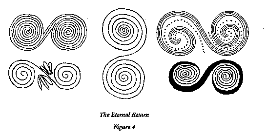 The Eternal Return Another place the message of eternal return is found is in the two-way interchanging spiral motifs of peoples all over the world. The spirals in Figure 4 are from Petrie's source book.(12)