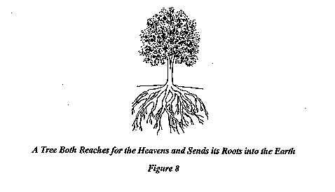 To early philosophers the Tree (or axis) of Life was the lifeline of the spherical soul. One very early source in elaborating on this theme compared the soul "to the sphere of the moon, but . . . furnished on all sides with eyes."(11) Similarly, the Garden in Eden is an image of the soul at its point of origin when it was in an undifferentiated relationship to the whole, and therefore "furnished on all sides with eyes." Taken altogether the symbolism of Eden describes the original inner landscape of the soul at the beginning of its journey into consciousness. As with every child in his or her outward-bound journey through life, the soul foregoes (forgets) its original state of unity. But in doing so begins a journey back that is a knowing return to the Whole.