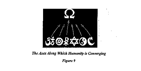 Teilhard echoes St Paul in describing Christ as the Omega Point towards which all of humanity is converging. According to Teilhard, and as illustrated in Figure 9, Christianity is the "principal" but not the only axis along which humanity is converging, "principal" because it is "where faith and hope reach their fulfillment in love."(27)