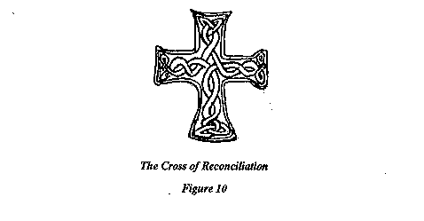 Eden's Four-Fold Polarity Eden then, in symbolizing the human psyche, has two pairs of polar opposites: one at each end of its vertical axis; and one at each end of its horizontal axis. Its vertical pole relates to heaven and earth, or the divine and the animal extremes of human nature, and the horizontal pole to "Adam" and "Eve" as symbolic of the masculine and feminine polarity inherent to human nature. The well-being of the human psyche depends upon a balanced interchange between these four poles. The Cross in Figure 10 beautifully illustrates this interchange. It is of Celtic origin of an unknown date.(28)Note how dynamically alive its design is, suggesting it could have been someone's "healing image," perhaps the means by which the one who made it became reconciled to the loss of a loved one.
