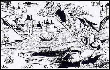 When Isaac and Rebekah had their twins, Esau, the first born, was "hairy" and grew up as Isaac's favorite. Jacob, the second, was "smooth" and favored by Rebekah. Rebekah connived with Jacob to deceive blind Isaac into thinking Jacob was Esau. Thus Jacob received the patriarchal Blessing that rightfully belonged to Esau. When Esau heard about the deception he let it be know he was going to kill his brother. In fear Jacob fled for his life. Thus Jacob was dumped from his "psychic container" into the aloneness and uncertainty of the Wilderness, but where he dreamt his big dream.(24) Jacob's Dream Of Jacob's twelve sons it was Joseph, neither the first nor last born, upon whom the Blessing of spiritual consciousness next fell. Provoked to jealousy by the partiality shown Joseph, his brothers sold him into slavery.(25) And so with Joseph the Blessing traveled down into Egypt where it disappeared from sight for the next four hundred years. There it remained as a seed hidden in the depths of the descendants of Abraham until, with a sudden burst of revitalization, the seed sprang forth once again in the person of Moses. It was this seed-potential for spiritual consciousness that brought Moses face to face with the Burning Bush where he received his call to be the new evolutionary dynamo around whom the twelve-tribe nation of Israel would come into being.