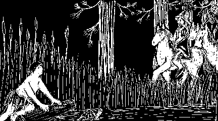 Hiding in the tules, I tried to figure out what it possibly could be. When it passed near to where I hid, I shook my head and blinked my eyes. What I seemed to be seeing was a band of eight persons sitting upon the backs of beasts. And the beasts were larger than our largest elk! Whether the riders were men or women I couldn’t be sure. They wore clothes as do our women but they shouted as loudly as our men. About one thing I was certain—they couldn’t be earth people. Perhaps they had come from the moon! Their pale faces made me think so. Wanting to make sure I wasn’t dreaming, I tossed my head so that my hair dashed against my cheeks. Then standing still as a rock and hardly daring to breathe, I listened with my inner ears. Something told me not to be afraid. Was I not Boy-Who-Talks-With-Animals? Was I not kin to every living thing? With my courage increased, I decided to follow the band but keep my distance so as not to be seen.