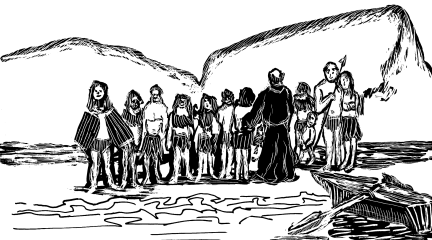 In the story's final chapter, Juan and Old Father sail into Monterey Bay and are greeted by his entire joy-filled people. In the days ahead he shares with them all the wonders he has seen. His mother, grandmother and sister all beg him to tell them the most pleasing thing he had seen in the whole trip. He begins, "I saw it from a hill. It was pink with roses, and from it I could see a silver ribbon of a river that emptied into a bay that was both blue and green. On one side the purple mountains ended. On the other began a point of green evergreens whose backs had been bowed with the burden of the north wind." And so he continues until his grandmother says "Bah!, I can see that from outside my ruc every sun in twelve moons!" With that laughter breaks out as everyone realizes it is Achasta he is describing, that returning home was the most wonderful part of his entire trip.